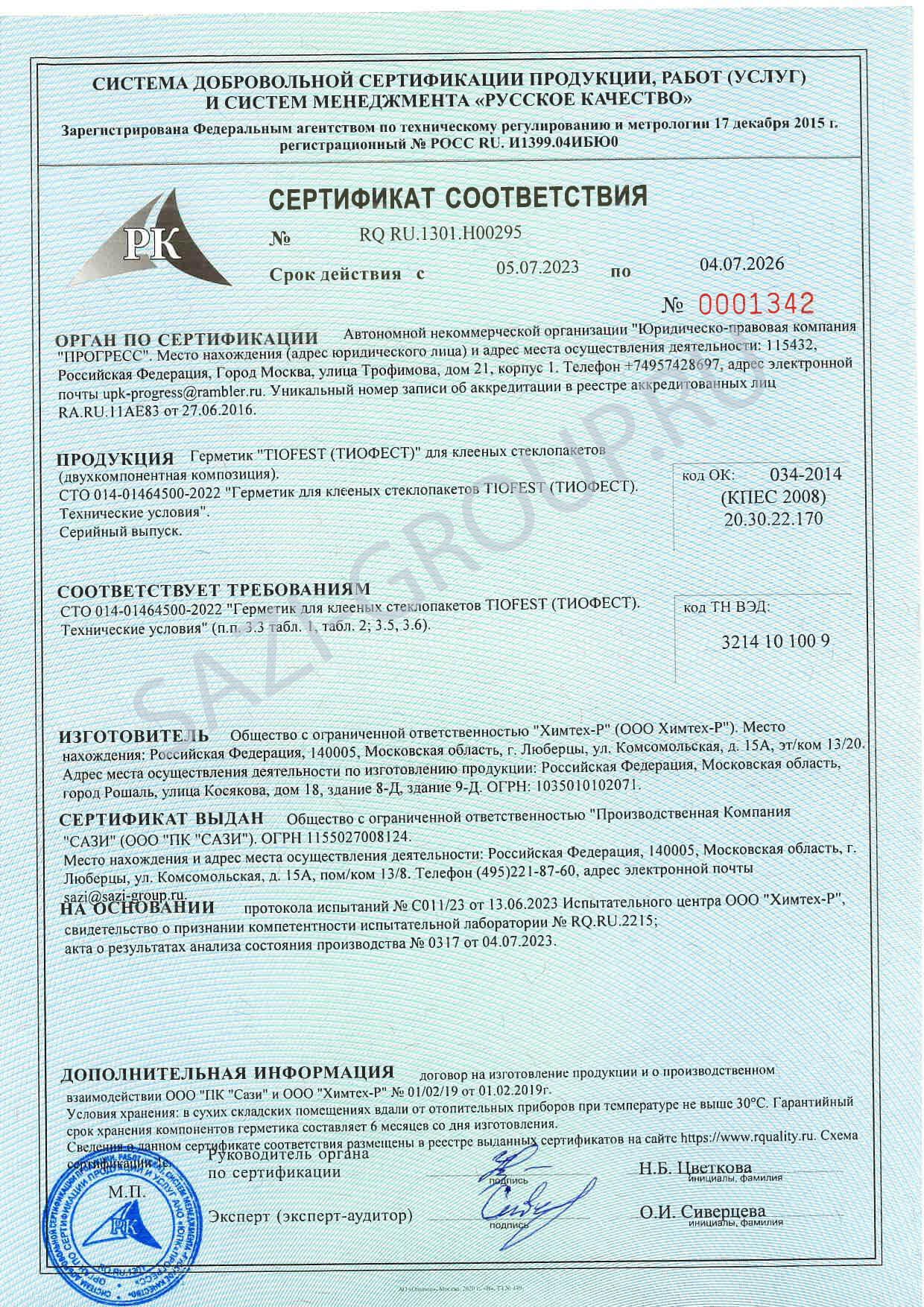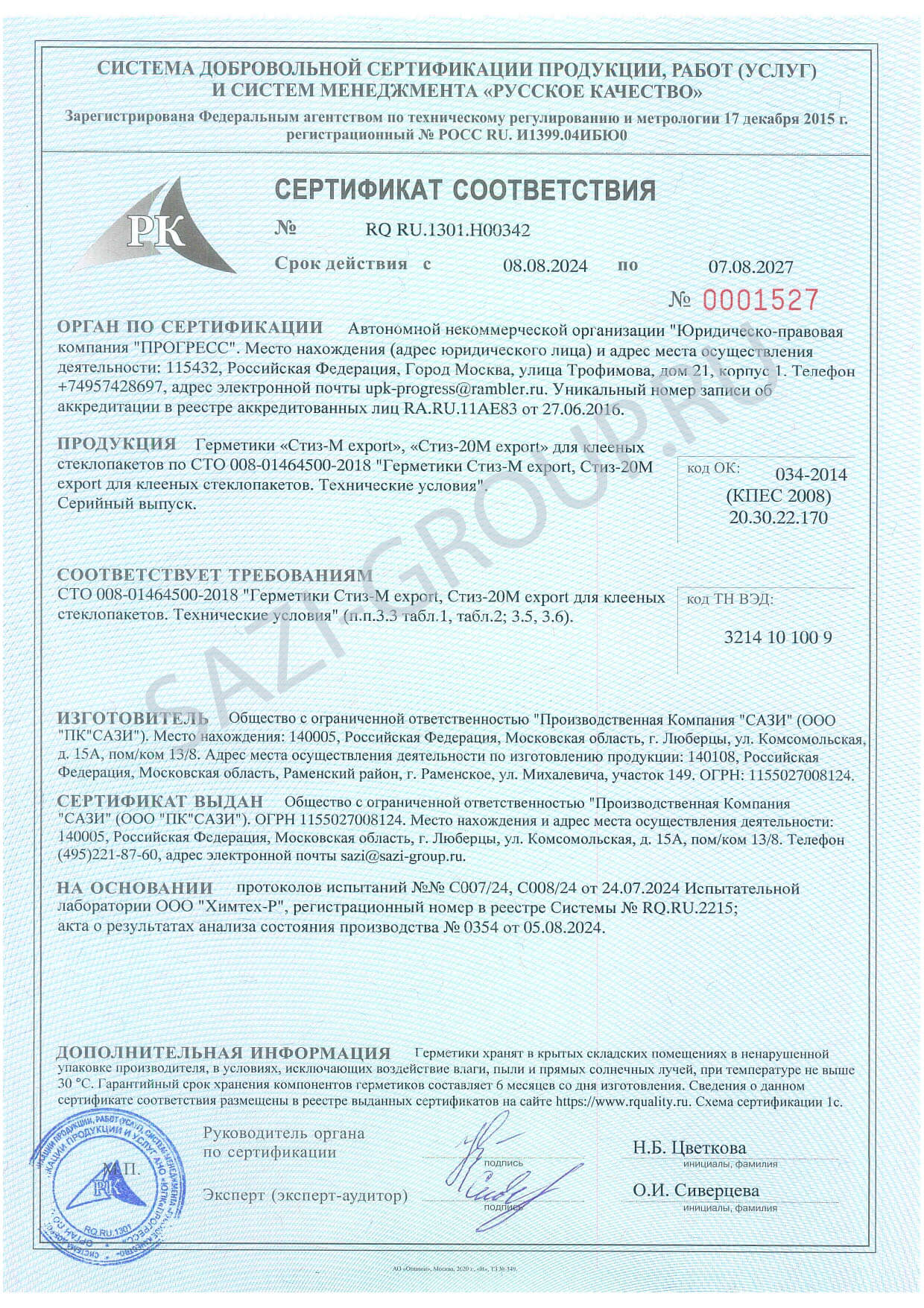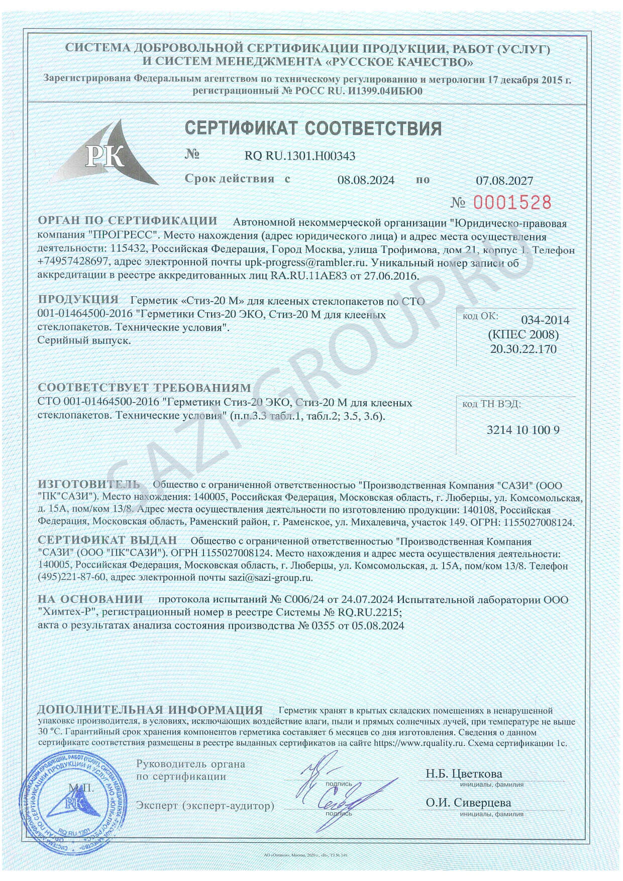 • Сертификат соответствия Сертификат соответствия Сазиласт 24 Снежинка Сертификат соответствия Сазиласт 24 Снежинка